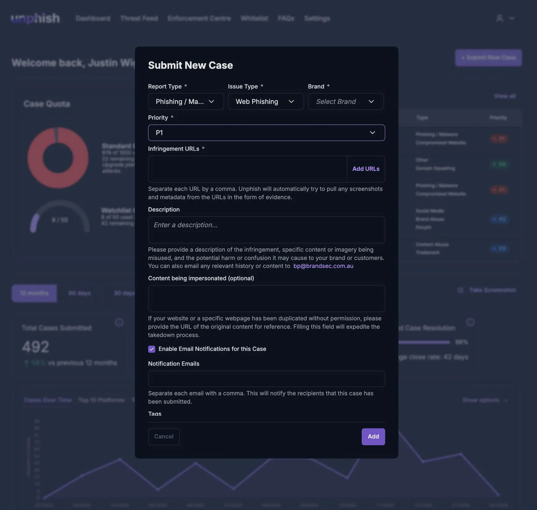unphish helps organisations identify, validate, and remove phishing sites, impersonation accounts, fake apps, and malicious infrastructure with speed and precision. Our takedown workflow is built to reduce exposure, protect customers, and limit brand damage.
