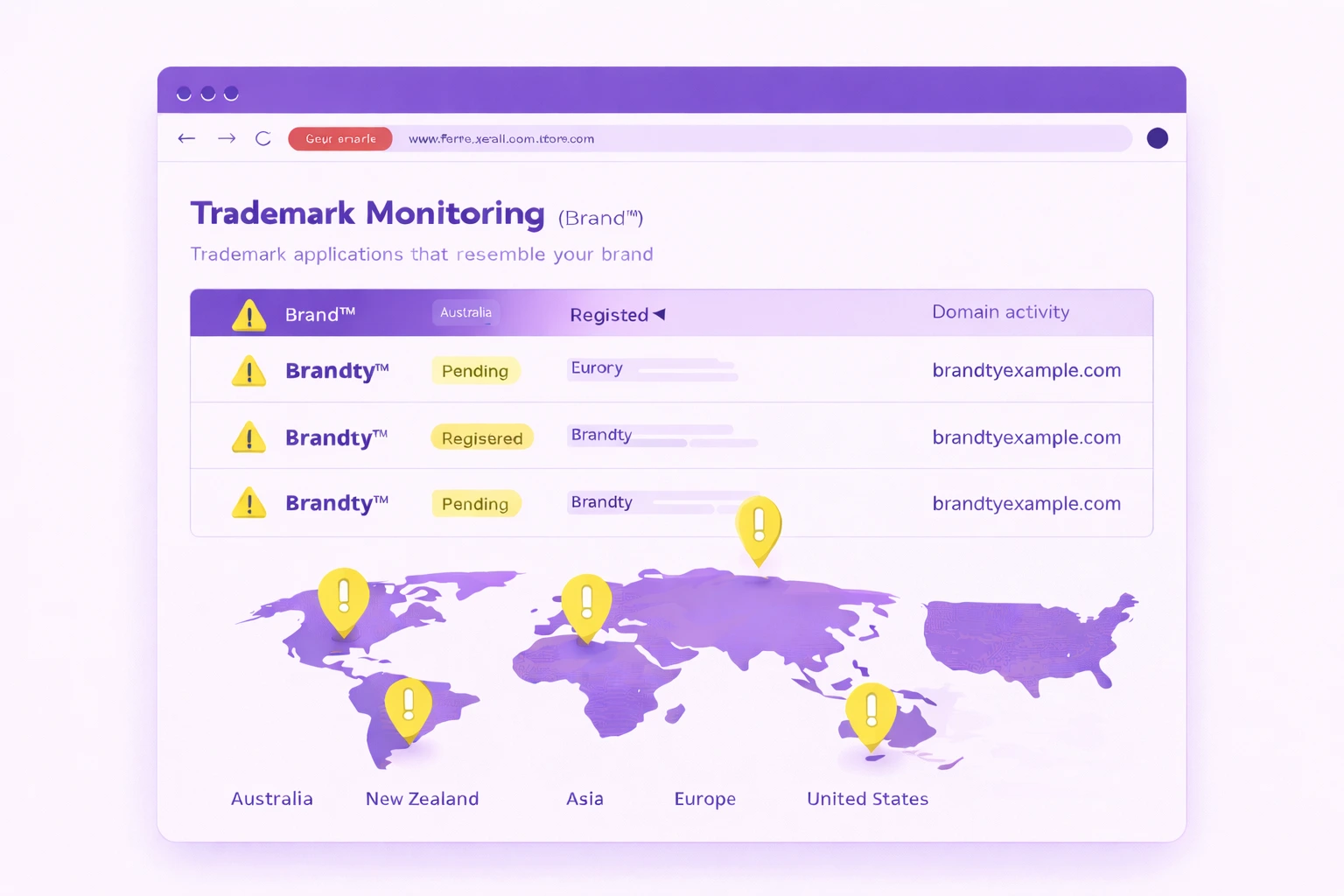 Monitor trademark registrations worldwide to identify identical or similar filings before they impact your brand. unphish provides early visibility across major jurisdictions, including Australia, New Zealand, Asia, Europe, and the United States, enabling proactive protection strategies.