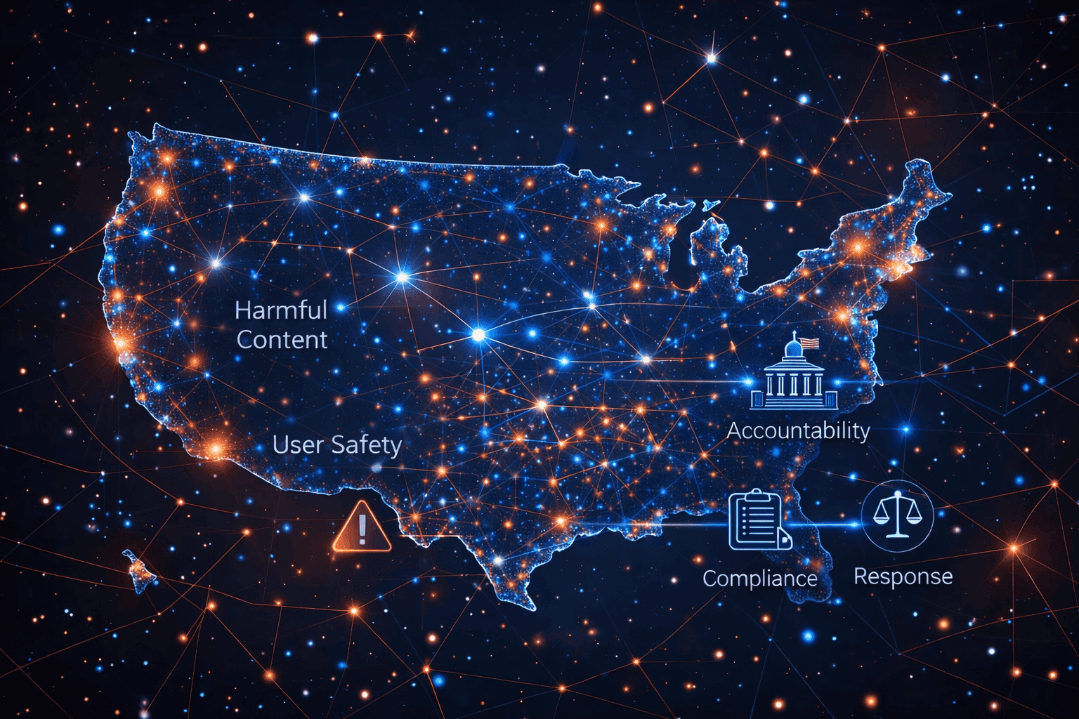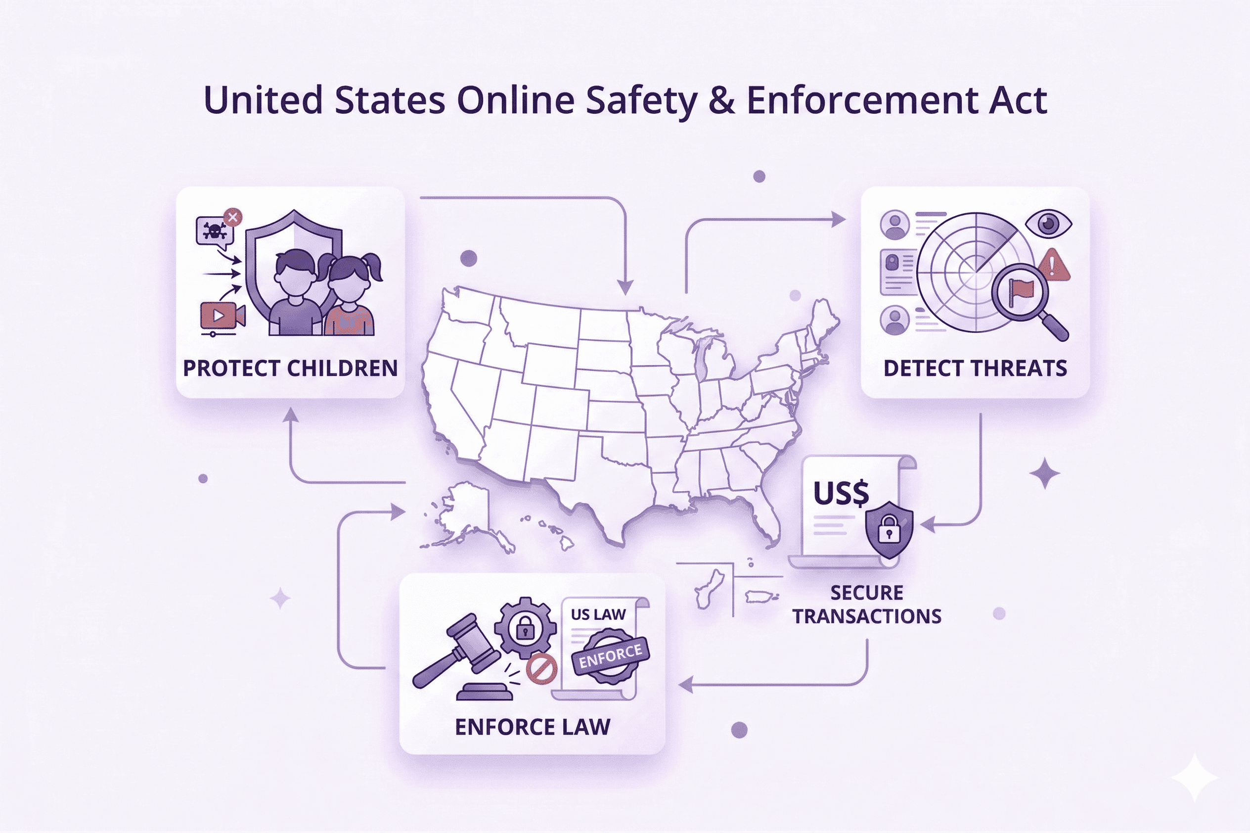 The United States does not operate under a single unified online safety statute equivalent to the Digital Services Act or the UK Online Safety Act. Instead, enforcement is distributed across multiple regulatory bodies, with a strong focus on consumer protection, fraud prevention, and unlawful communications.
