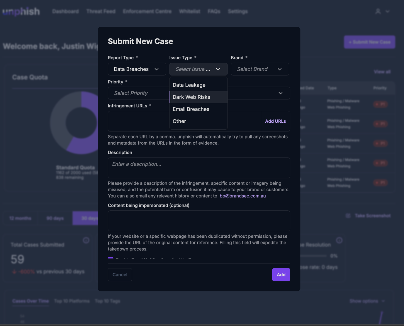 By connecting dark and deep web intelligence with enforcement workflows, unphish delivers a more proactive and operational approach to threat prevention.